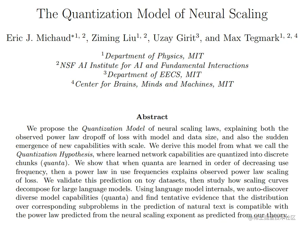 以 Quanta 为概念基础为大模型 Scale Law 与涌现能力做解释的《The Quantization Model of Neural Scaling》
