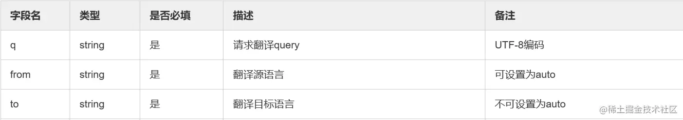 请求翻译接口的参数如下: