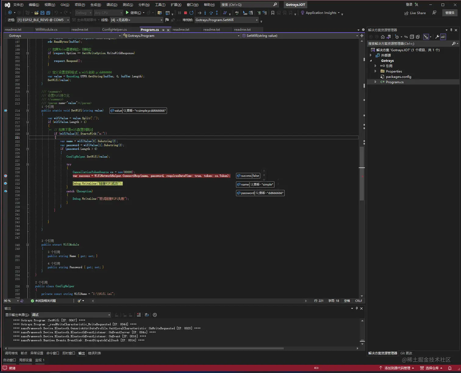 ConfigHelper则是操作文件将wifi的配置持久化,nanoframework的文件系统默认是I,文件路径则是I:\\Wifi.ini这样就可以将数据持久化了。