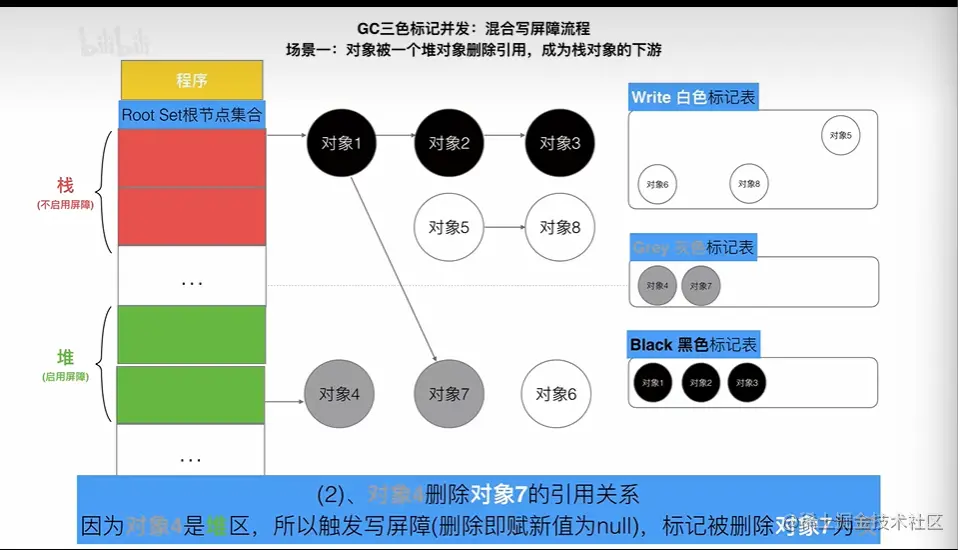 堆对象4->对象7 = nil // 对象4 删除引用 对象7