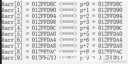 printf("&arr[%d] = %p <====> p+%d = %p\n", i, &arr[i], i, p+i);