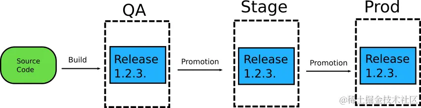 这种方法的主要优点是“部署升级是一个简单的git合并”。理论上,如果想要将一个版本从QA环境升级部署到预发环境,只需将QA分支合并到预发分支即可。当我们准备好生产环境时,再次将预发分支合并到生产分支,就可以确定来自预发的所有变更已经部署到了生产环境中。