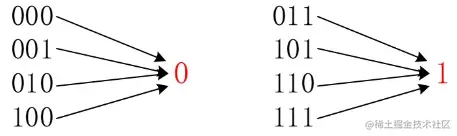 Example: , 有 000----0 ; 111--- " 1 " 译码时, 采用大数判决, 有