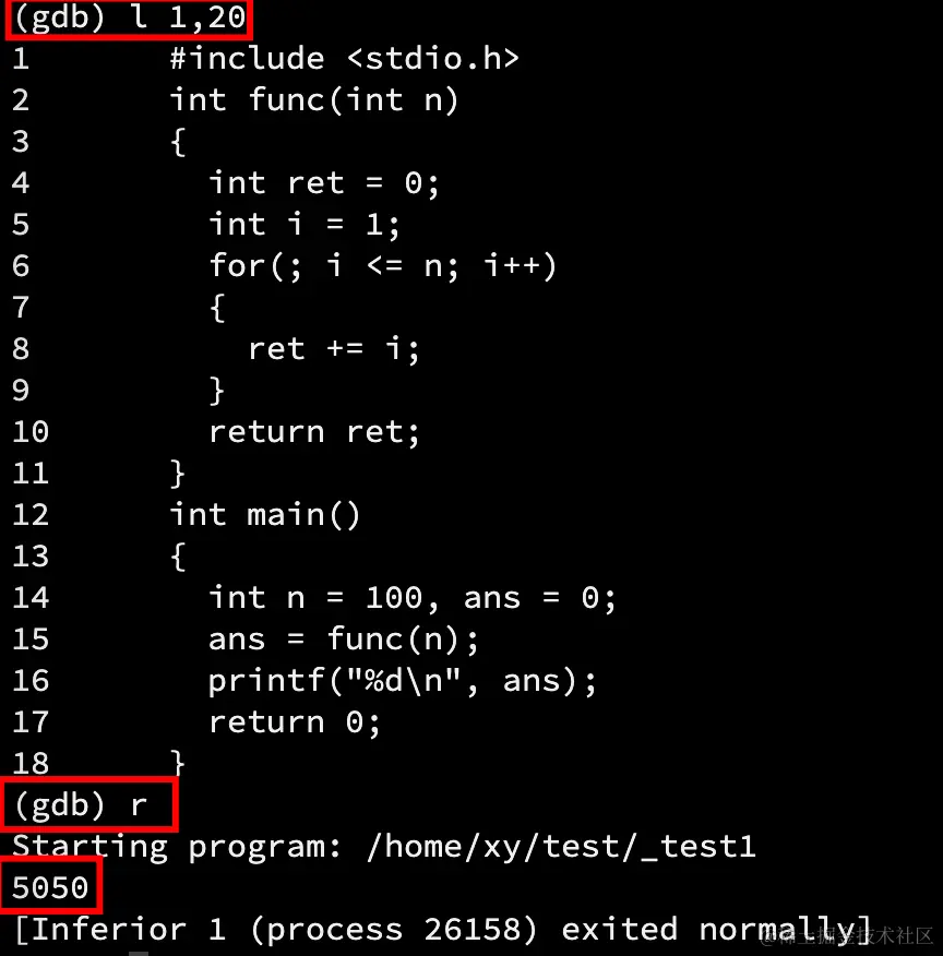 蓝色部分依然打印出了程序的结果,原因是命令r是运行程序,且程序没有断点(也不会有)。