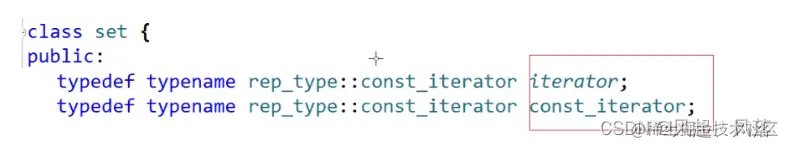 typedef typename RBTree<K, K,setkeyOfT>::const_iterator iterator;
