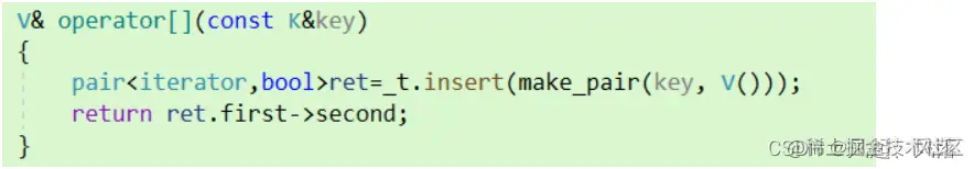 pair<iterator,bool>ret=_t.insert(make_pair(key, V()));