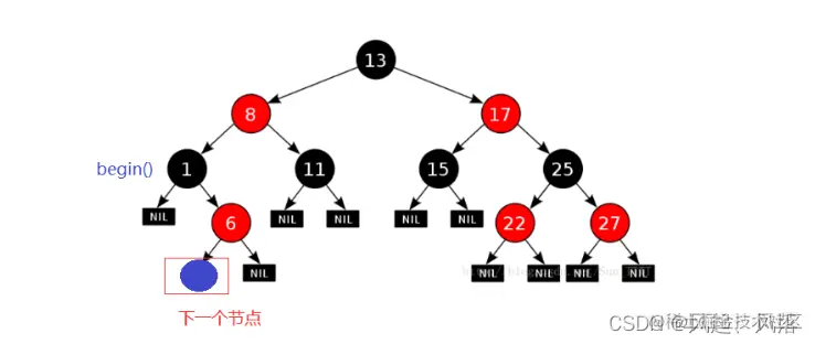begin返回 的是开头的数据 即中序遍历的第一个 即最左节点