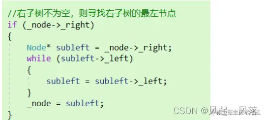 若当前右子树不为空,则下一个节点为右树的最左节点即蓝色节点