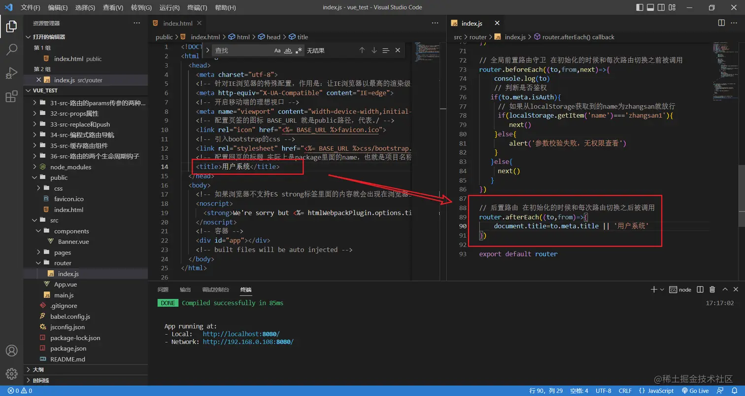 document.title = to.meta.title //修改网页的title