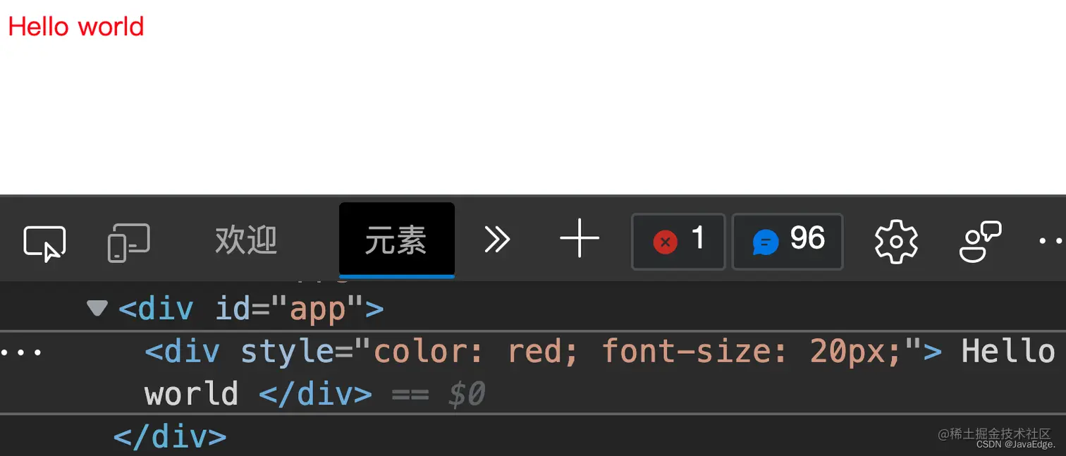 现在要实现点击div区域里的 hello world 文本时,文本变成红色。