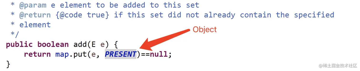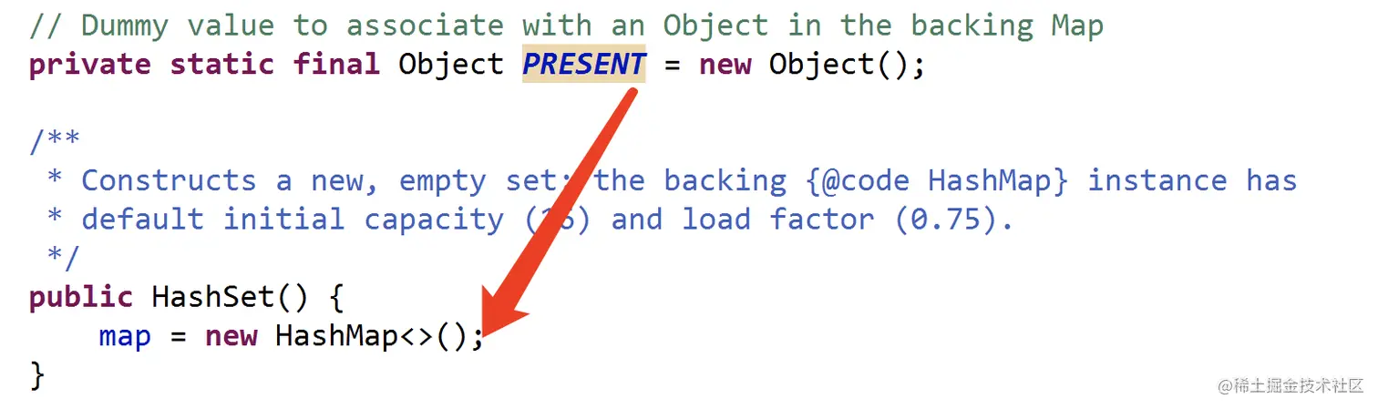 从底层实现来看,HashSet的底层其实就是一个值为Object的HashMap,如下图所示: