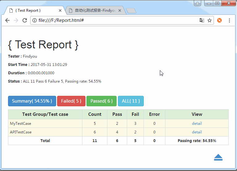 运行 run.py 文件后,我们可以在 reports 目录下看到生成的 test_report.html 文件,打开它,我们可以看到以下内容: