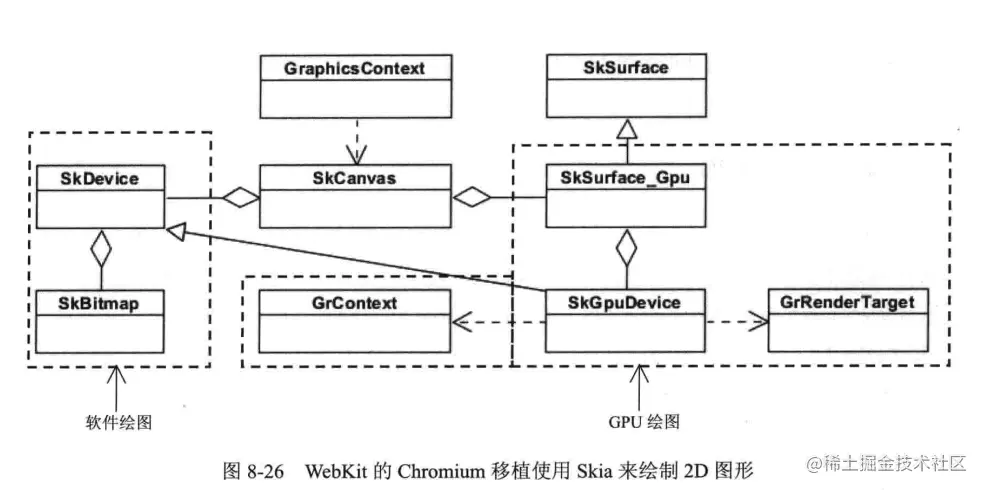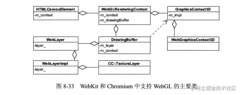 在webkit中,存储空间用GraphicsLayer类表示。图8-1描述了这些类以及它们之间的关系。