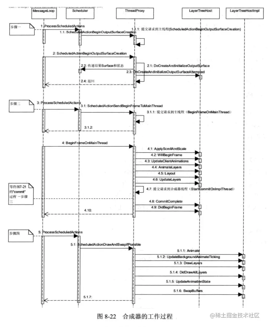 在步骤一中,合成线程搜狐县创建合成器需要的(输出结果的)后端存储。在调度器执行该任务时,该线程会把任务交给主线程完成。主线程会创建后端存储并把它传回给合成线程。