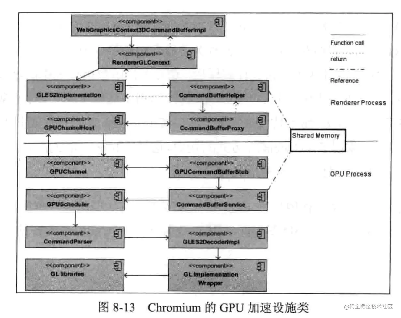 现有的实现是基于共享内存完成的。命令基于GLES编码成特定格式存储在共享内存中。共享内存采用欢迎缓冲区的方式管理,内存可以循环使用。