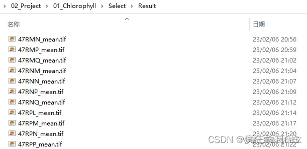首先,来看一下本文所需实现的需求。如下图所示,现有一个文件夹,其中含有大量栅格遥感影像;这些遥感影像均为同一成像时间、不同空间范围的遥感影像。我们希望做到的,就是对这些遥感影像加以拼接,最终的结果图像就是一景将这里各个图像拼接后的大图像。