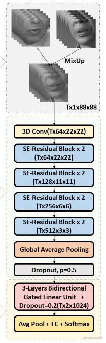 上面这两个分别是单模态和多模态的出自论文[1][2],大多数的唇语识别模型都会采用ResNet-18+Conv3d的前端组合,上面的两个模型也不例外。