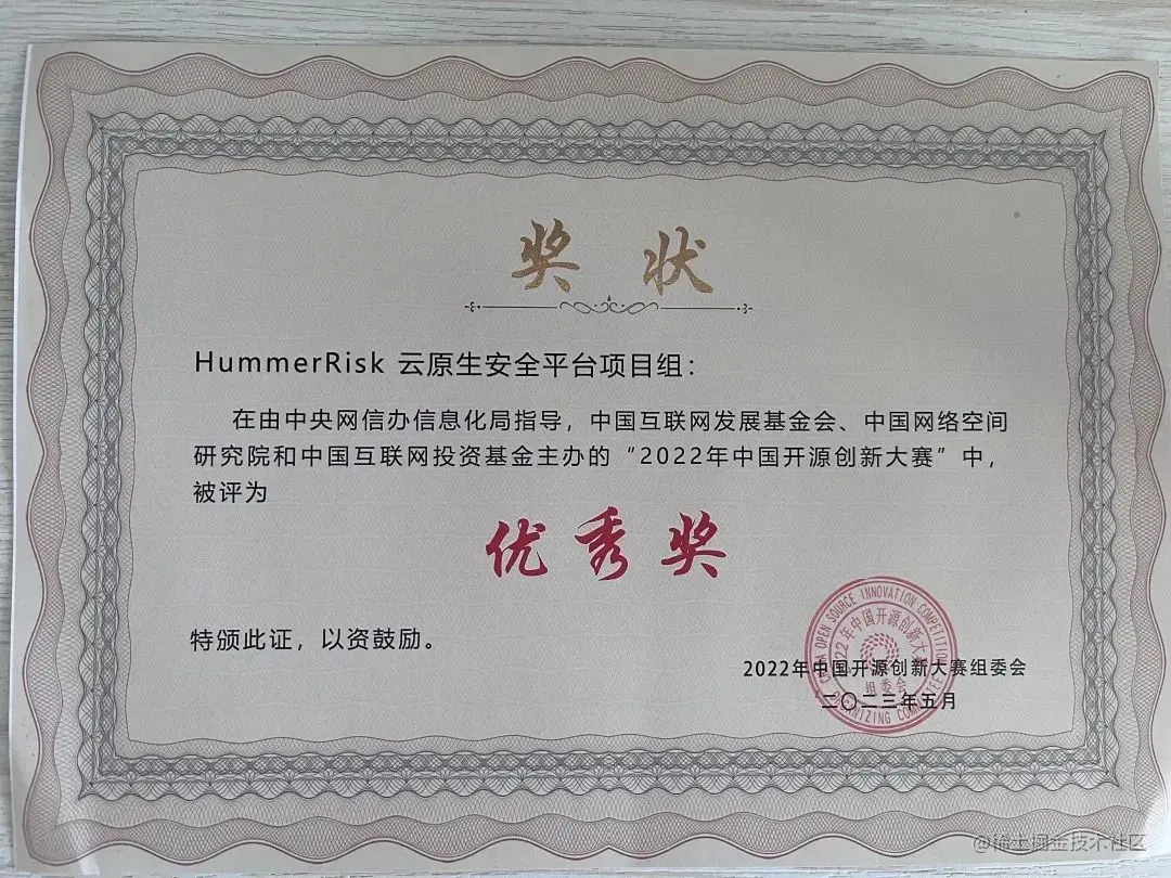 日前,2022中国开源创新大赛落下帷幕,最终HummerRisk 荣获优秀奖。