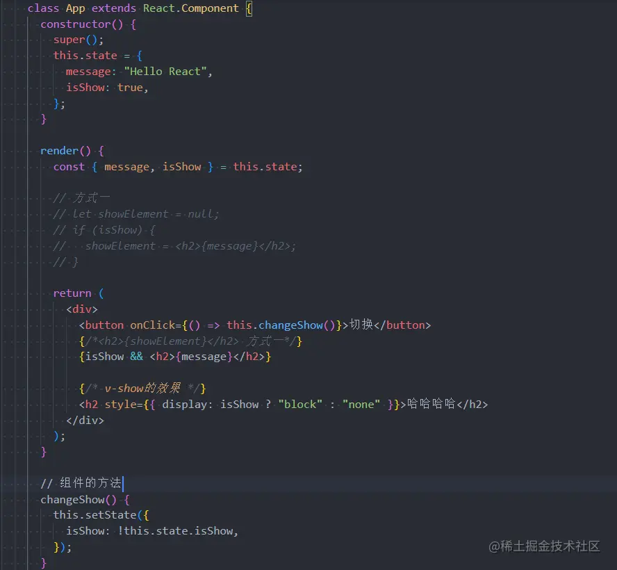 - React中,所有的条件判断都和 JavaScript 代码一致