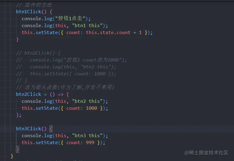 在事件执行后,我们需要获取当前类的对象中相关的属性,这个时候需要用到this