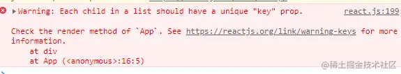 这个警告是告诉我们需要在列表展示的jsx中添加一个key