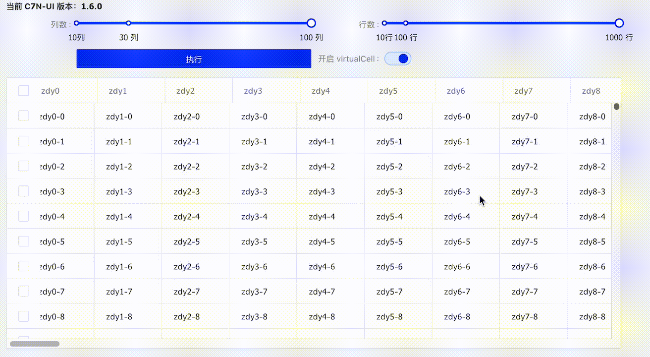 市面上的组件虚拟滚动功能基本仅支持以上纵向的虚拟处理,处理数据行的虚拟化。