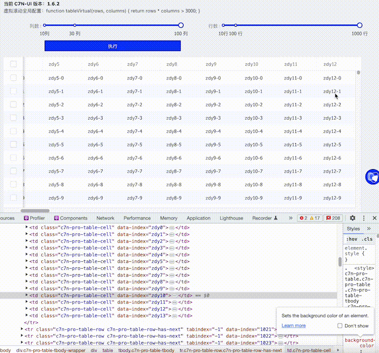 因此新增列阈值: 以多少列进行一次渲染变化,避免粒度过小的高频次渲染;