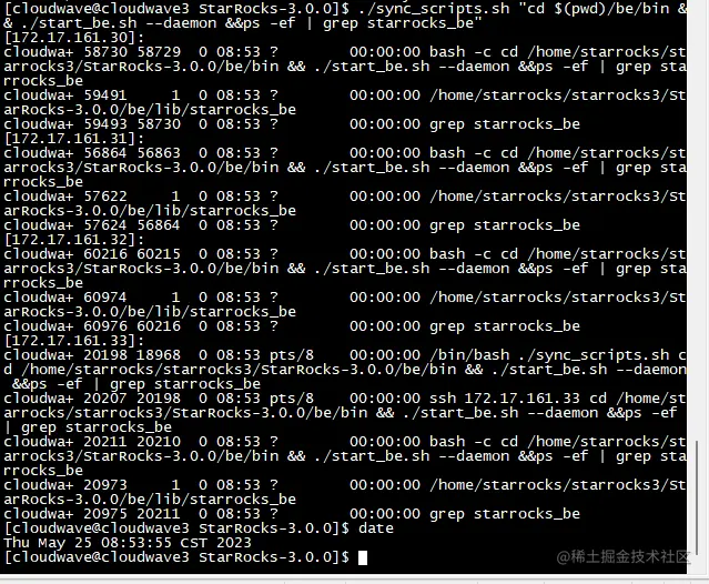 ./sync_scripts.sh "cd $(pwd)/be/bin && ./start_be.sh --daemon &&ps -ef | grep starrocks_be"
