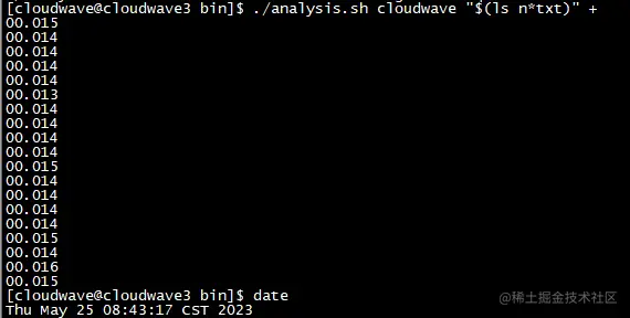 ./analysis.sh cloudwave "$(ls n*txt)" +,可以看到拓展SQL2耗时是14ms。
