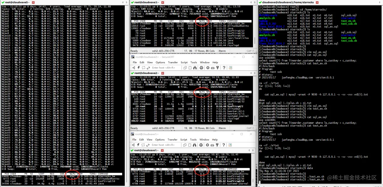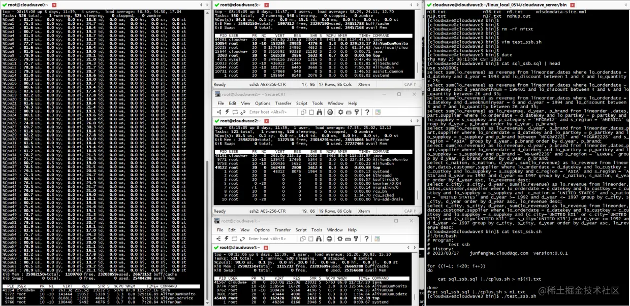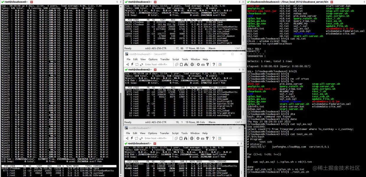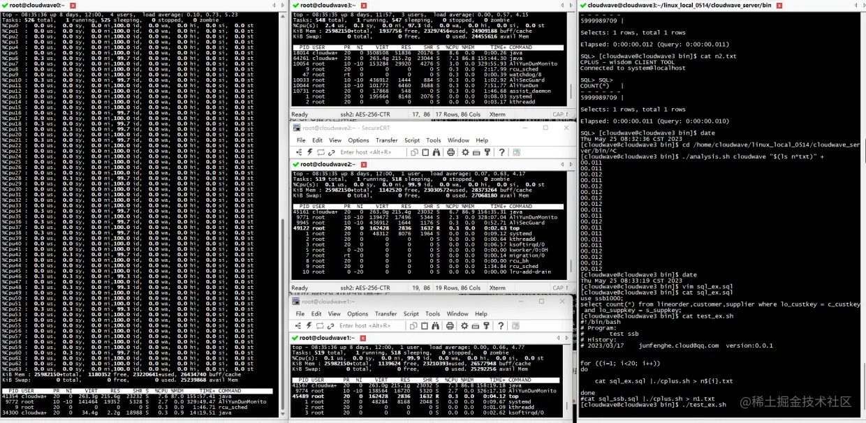 ./test_ex.sh,七镜观察到cloudwave的4节点集群测ssb1000 的拓展SQL2的CPU最大占用是0.118%(7.6%/6400%)