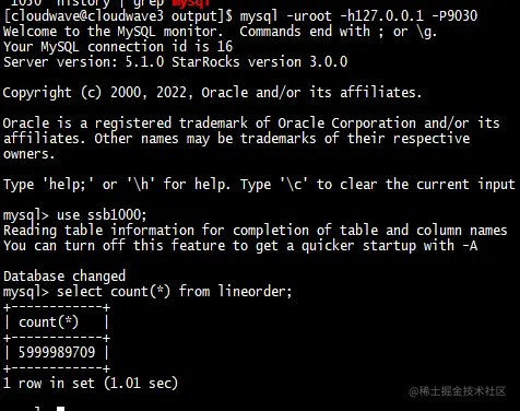6. 启动cloudwave数据库,并导入ssb1000数据