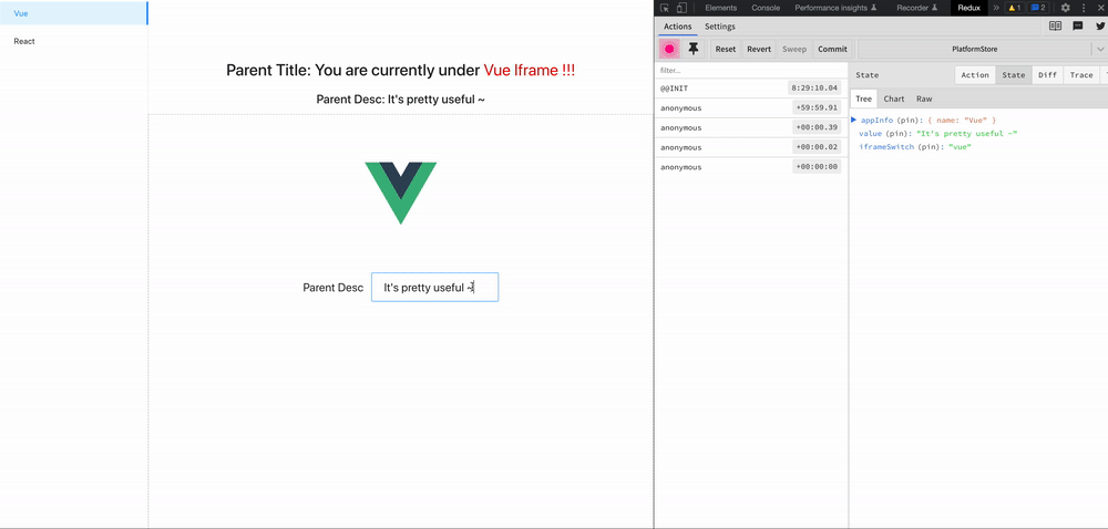 跨组件、跨应用通信的另一种方案:应用/组件(也可以理解为支持跨应用场景) 间可以相互调用/修改 state,并触发组件渲染,- 如果你是iframe,则可以抛弃掉难维护的