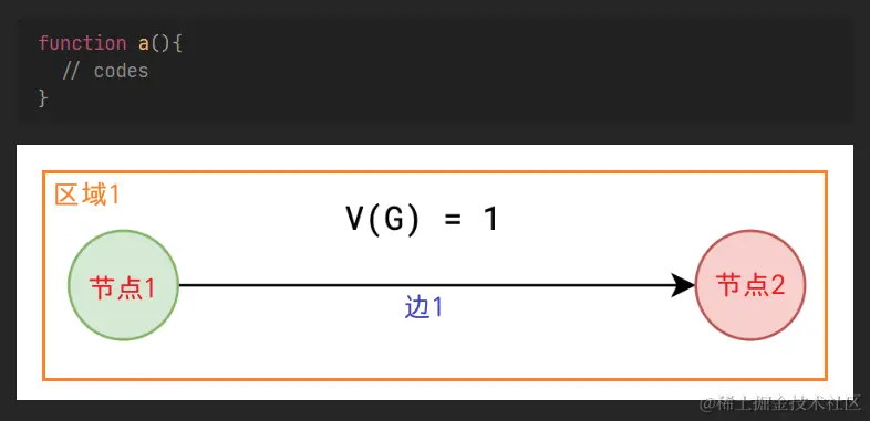 套用公式二:可以看到只有一个区域,所以 也就是圈复杂度为 1