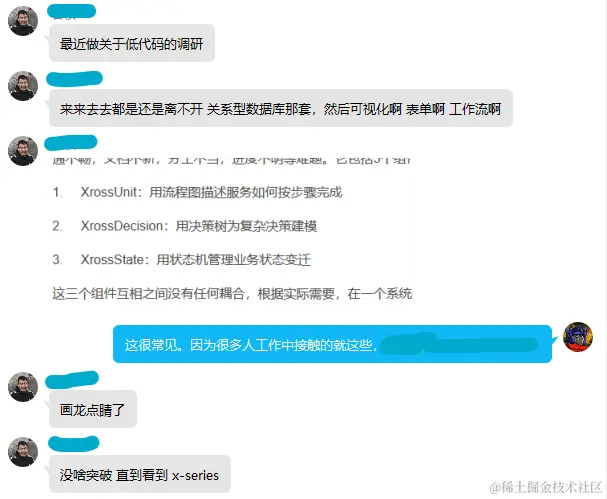 资深码农,精通OOAD,设计模式,框架以及中间件研发。在低代码概念火起来之前已经默默从事相关研发多年。在21年InfoQ举办的ArchSummit的低代码专场上做过分享并主持了其后的低代码沙龙。将毕生所学融会贯通于开源框架x-series。希望为广大徘徊在效率困境中的研发人员带来帮助。