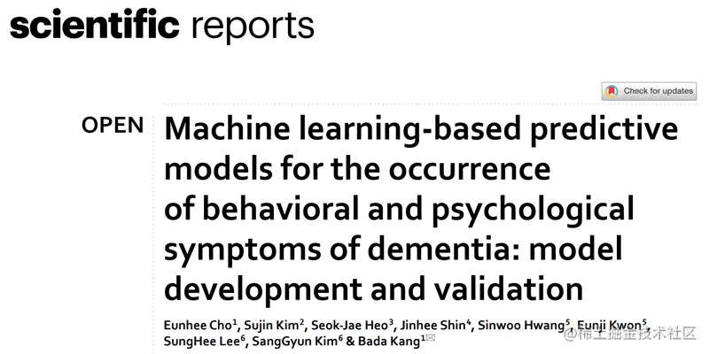 近期,韩国延世大学 (Yonsei University) 的研究人员 Eunhee Cho 等人开发了多个用于预测 BPSD 的机器学习模型,并对它们进行了验证。目前该研究已发布在《Scientifc Reports》期刊,标题为「Machine learning‑based predictive models for the occurrence of behavioral and psychological symptoms of dementia: model development and validation」。