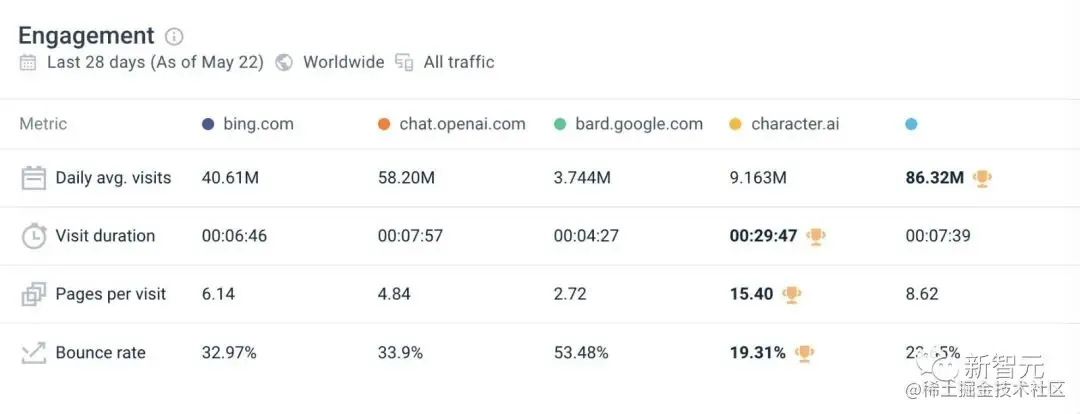 Character.AI声称,在该应用程序发布之前,Character.AI网站的访问量超过2亿次,用户平均每次访问花费29分钟——这个数据是ChatGPT的300%。