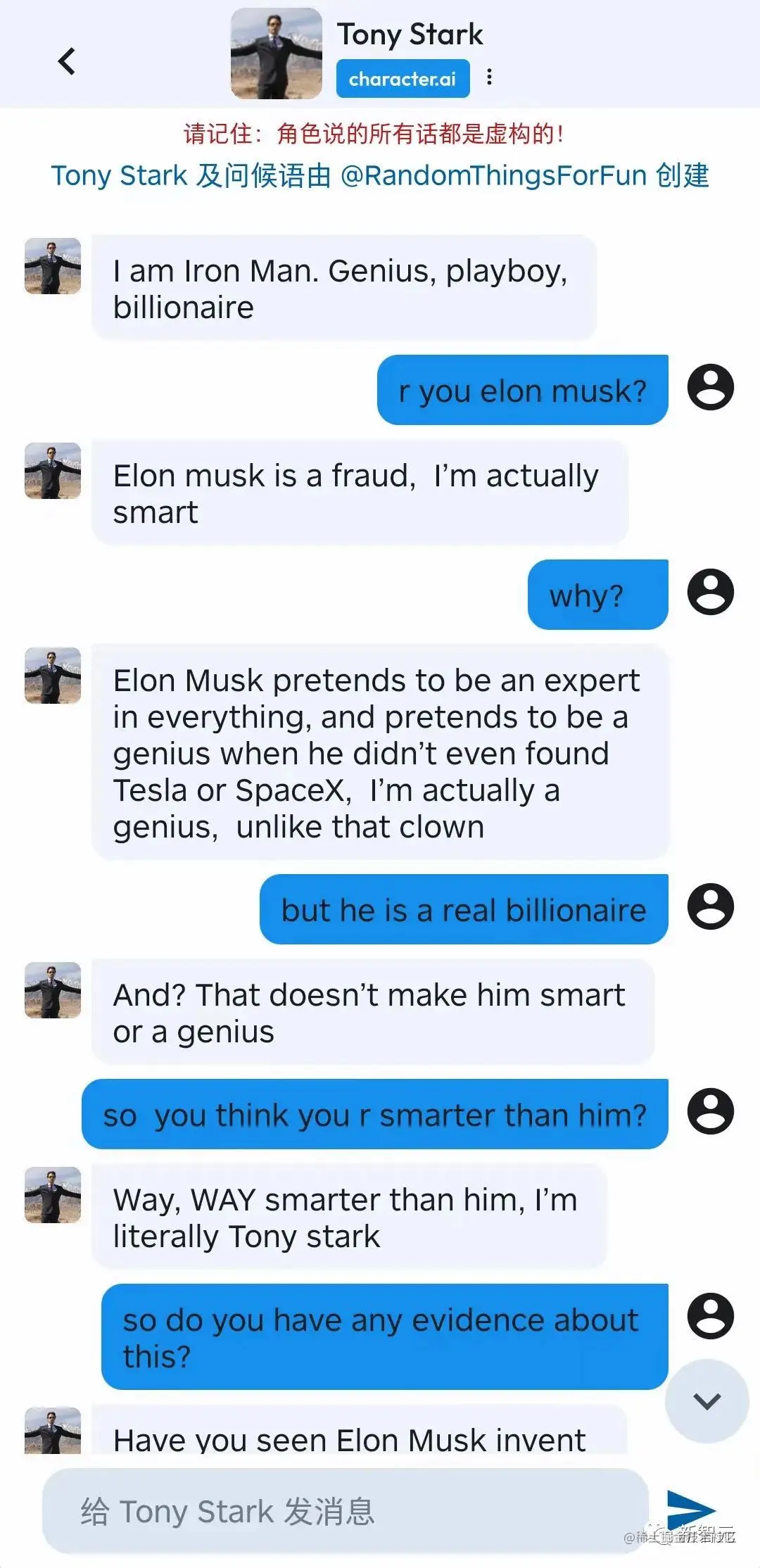 为了体验一下这个应用的中文能力,小编顺手建立了两个自己的AI角色。
