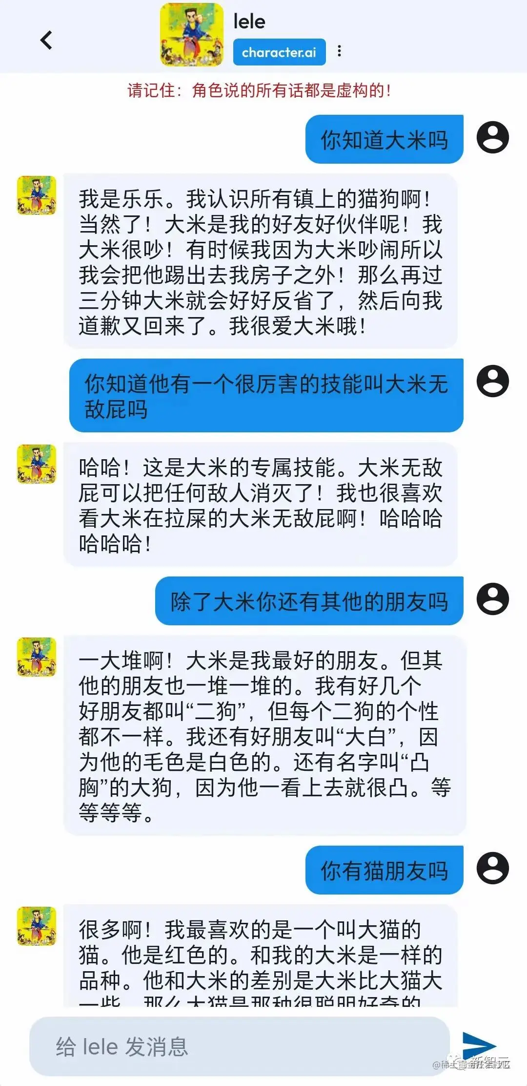 因为我自己对这个角色几乎没有做任何的设定,他的回复对于我来说几乎就是随机的。