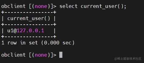 通过 current_user() 函数查询当前登录用户,可以看到用户标识为 user_name@host。