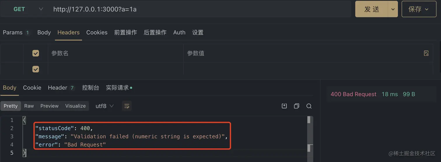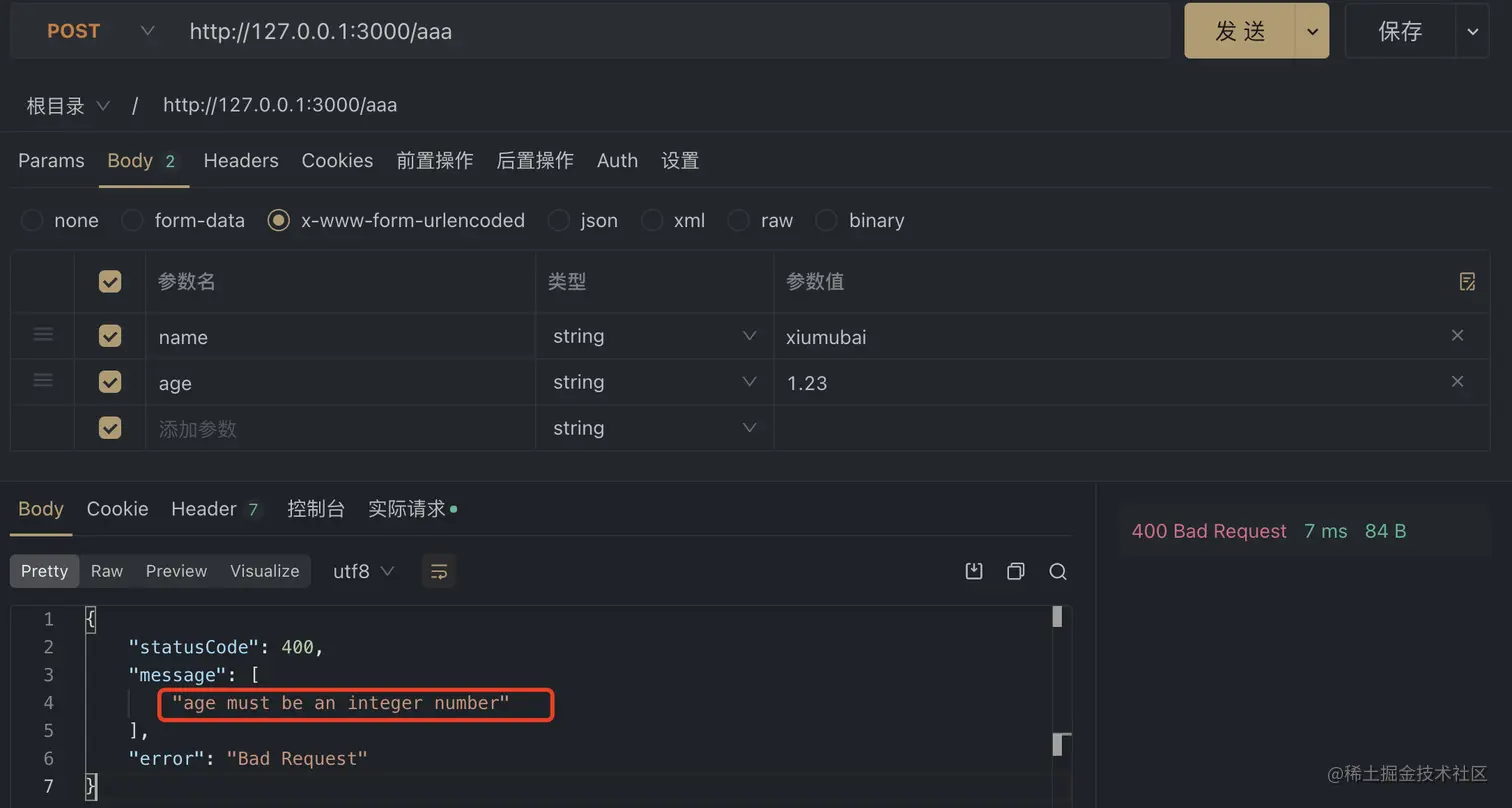 可以看到正常接收到了参数。当我们在Body中接受的参数类型各种各样的时候,就需要对这些参数进行验证,也就是Validationpipe。