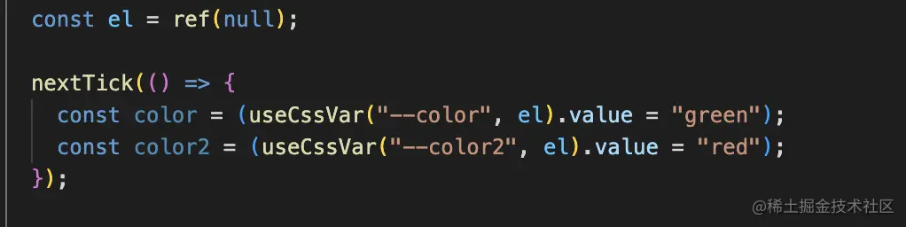 前端主题切换-useCssVar 清新空气 2023-06-12 692 阅读1分钟 useCssVar可用来切换,实现原理是通过修改css变量的值来自定义主题色,也可以修改对应dom的颜色变量,这样下来,主题切换非常方便。 首先导入useCssVar import { useCssVar } from "@vueuse/core"; 1.然后实现html上css变量改变 html元素上,css变量展示 如此一来,就改变了html上css变量。 2.实现dom元素上css变量改变 首先我们获取到当前元素: 然后设值: 效果如下: