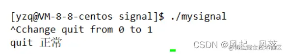 运行可执行程序后,当输入 2号信号时,调用自定义方法将quit置为1,跳出while循环