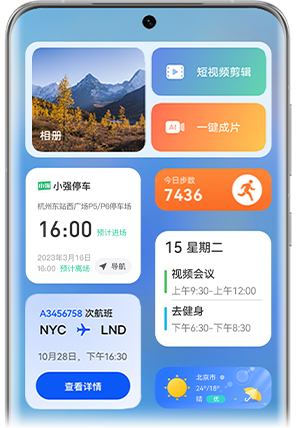 **Anja:**华为终端上提供多样化系统级智慧入口作为卡片分发矩阵:手机预装、应用市场、负一屏、浏览器、搜索等。除了这些入口的流量曝光,元服务未来还会结合AI能力,做更多的场景化推荐的服务卡片,提供“服务找人”能力。例如,针对旅行/出差场景,系统可以推荐“订酒店机票、打车、拍照美图、当地餐饮”等组合卡片,深入理解用户意图,推荐“精准的”、“附近的”服务,帮助终端用户快速地完成旅行前、旅行中以及旅行后等相关使用需求。
