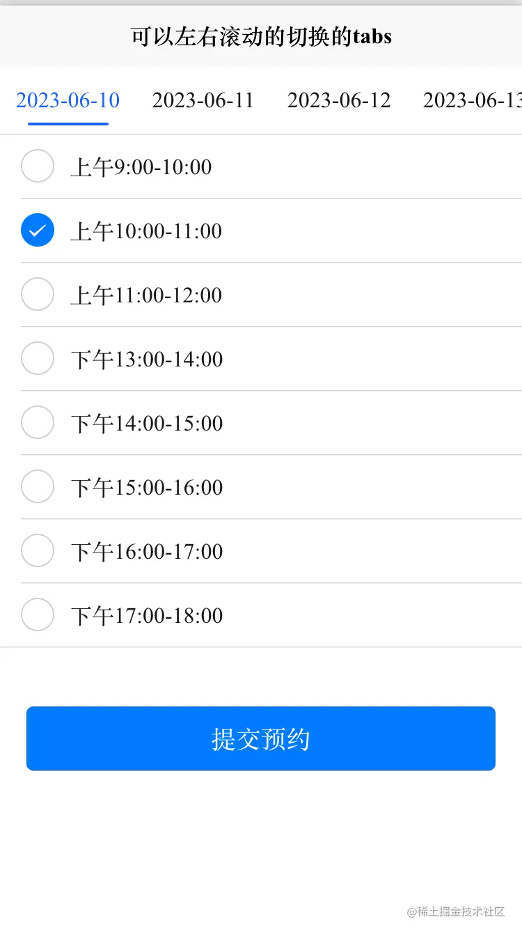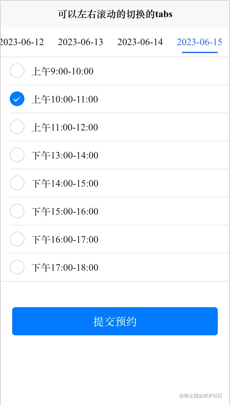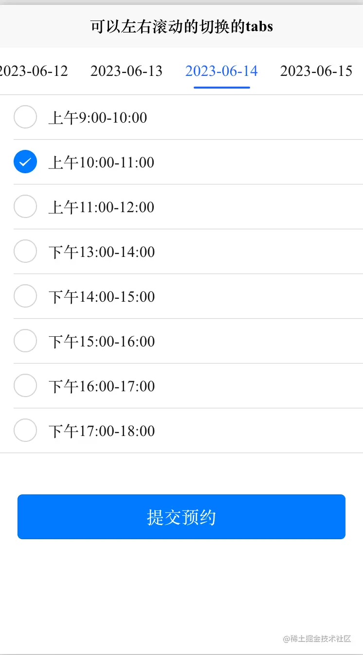 swiperTabList: ["2023-06-10","2023-06-11","2023-06-12","2023-06-13","2023-06-14","2023-06-15"], //导航列表