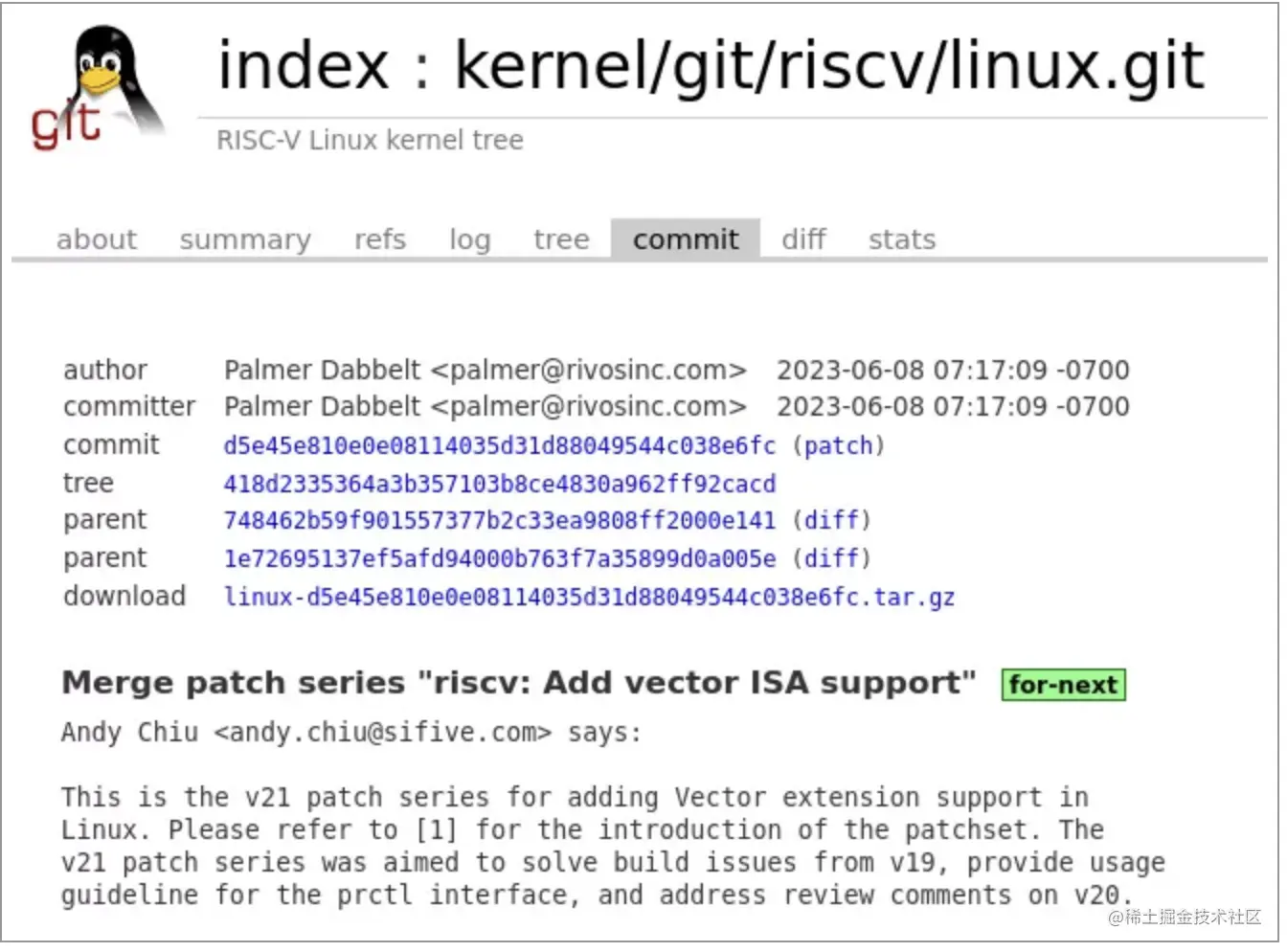 现在实现的里程碑是,RISC-V Vector ISA 对 Linux 内核的支持已经被维护者 Palmer Dabbelt 合并到 riscv/linux.git 的 for-next 分支。随着它进入 for-next 分支,它应该反过来被提交到即将到来的 Linux 6.5 内核合并窗口的主线上,作为下一个内核周期的 RISC-V 端口更新的一部分。
