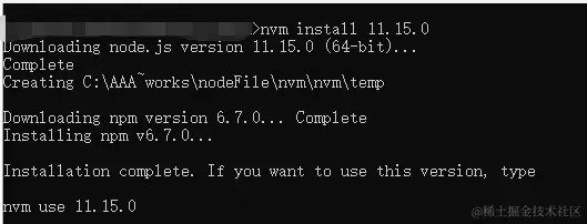5 nvm install v11.15.0 // 指定安装v11.15.0 的nodeJS;