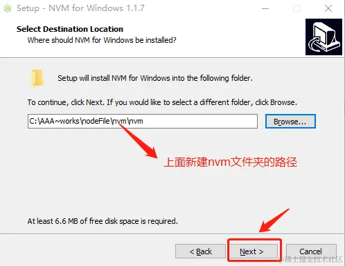 ④.选择nvm安装路径,点击下一步