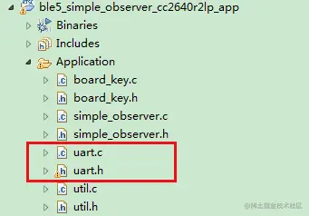 将 uart.c 和 uart.h 两个文件拖拽至CCS工程的Application文件夹下