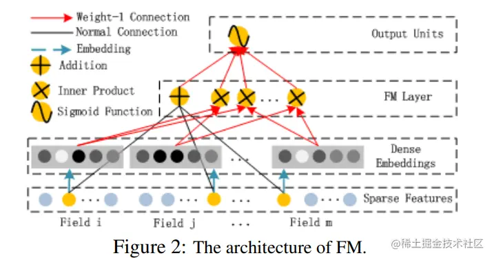而FM的优势就在于对这两方面问题的处理。首先是特征组合,通过两两特征组合,引入交叉项特征(二阶特征),提高模型得分;其次是高维灾难,通过引入隐向量(对参数矩阵进行分解),完成特征参数的估计。