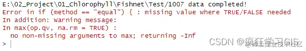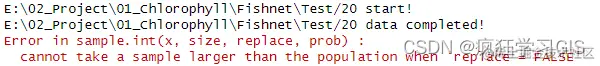 此外,有时候在运行时,还会出现很久都得不到结果的情况。如下图所示,我当时需要对多个文件夹内的栅格图像文件分别加以地理探测器操作,为了方便了解程序运行进度,就添加了一些输出语句;而此时发现,对于某些文件夹的数据,在进行地理探测器代码的运行时,其会在一个地方一直卡住,也不报错,但是也不会继续往下进行。